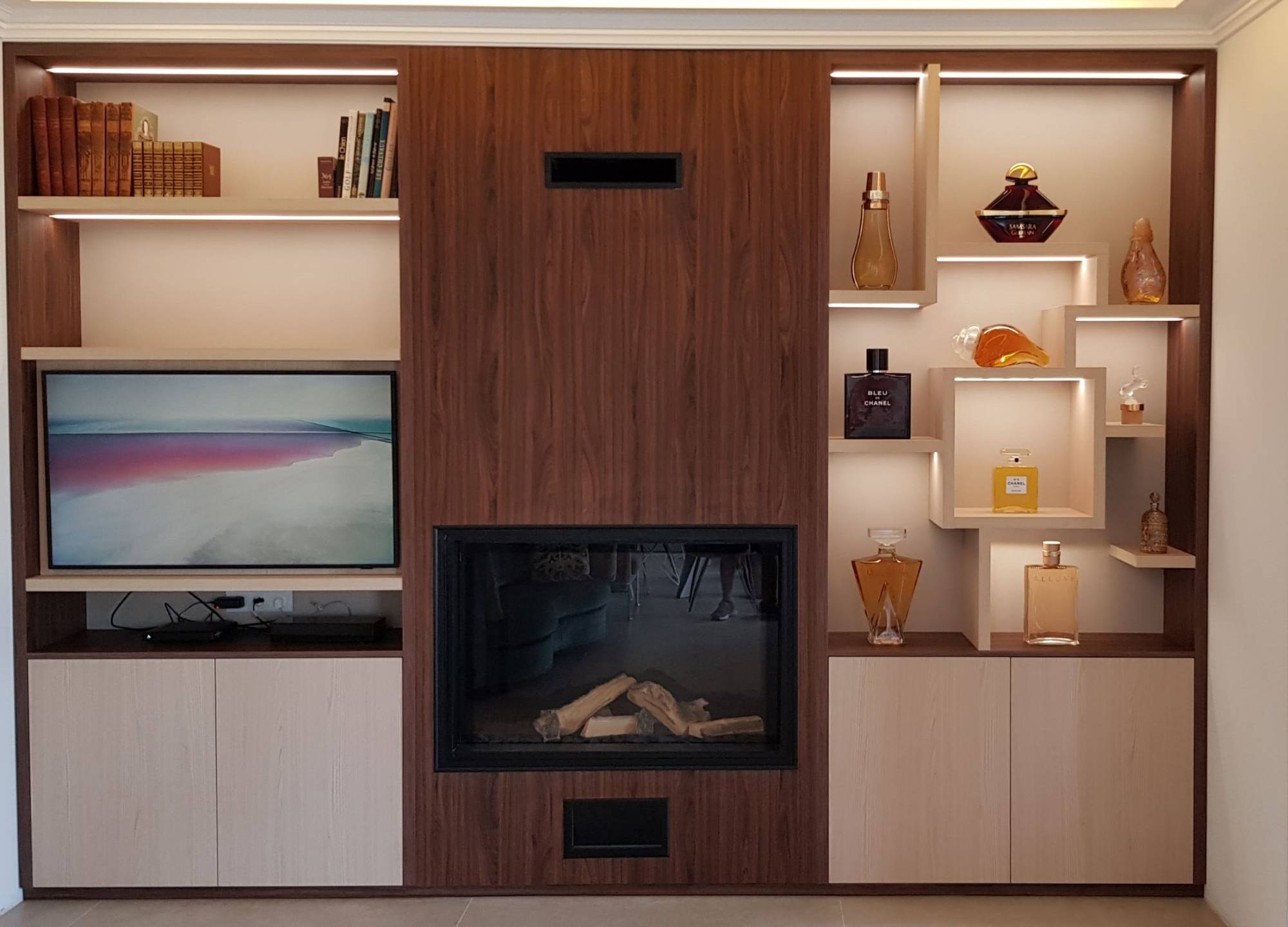 Nos services comprennent la fabrication de meubles sur mesure, tels que des dressings, des bibliothèques, des bureaux, des meubles TV et des cuisines. Nous utilisons des matériaux de qualité supérieure tels que le bois massif, le contreplaqué, le MDF, le mélaminé et le verre pour fabriquer vos projets. Nous offrons également une large gamme de finitions telles que le laqué, le vernis, le mat et le brillant pour répondre aux besoins et aux goûts de nos clients.