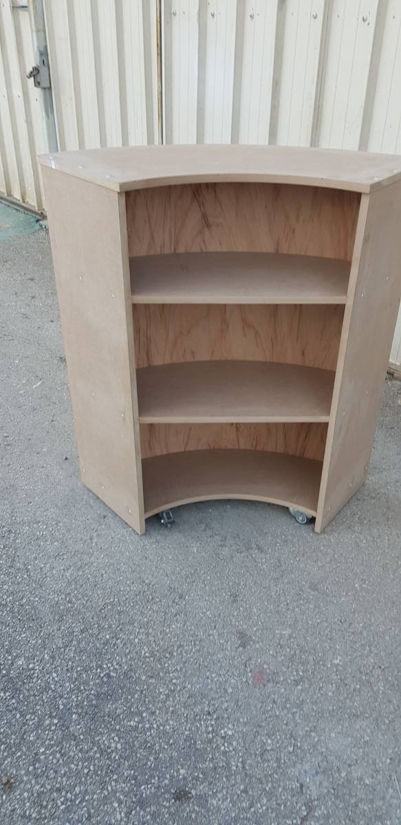 L'habillage de la banque d'accueil a été réalisé en panneau de medium, matériau résistant et durable, souvent utilisé pour l'application de laque, de vernis ou de patine.