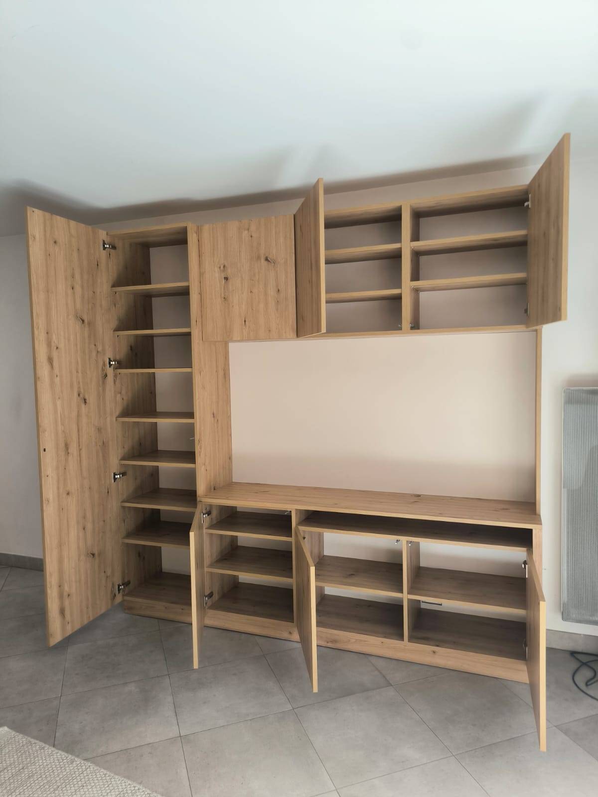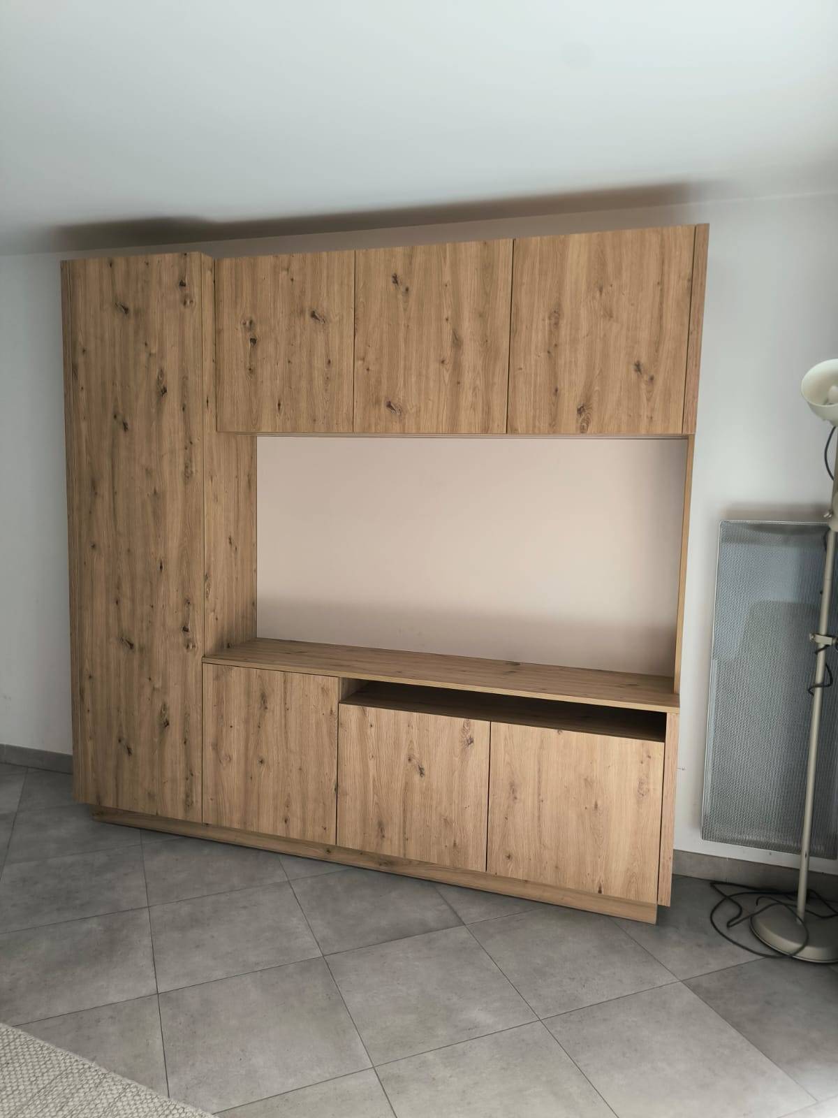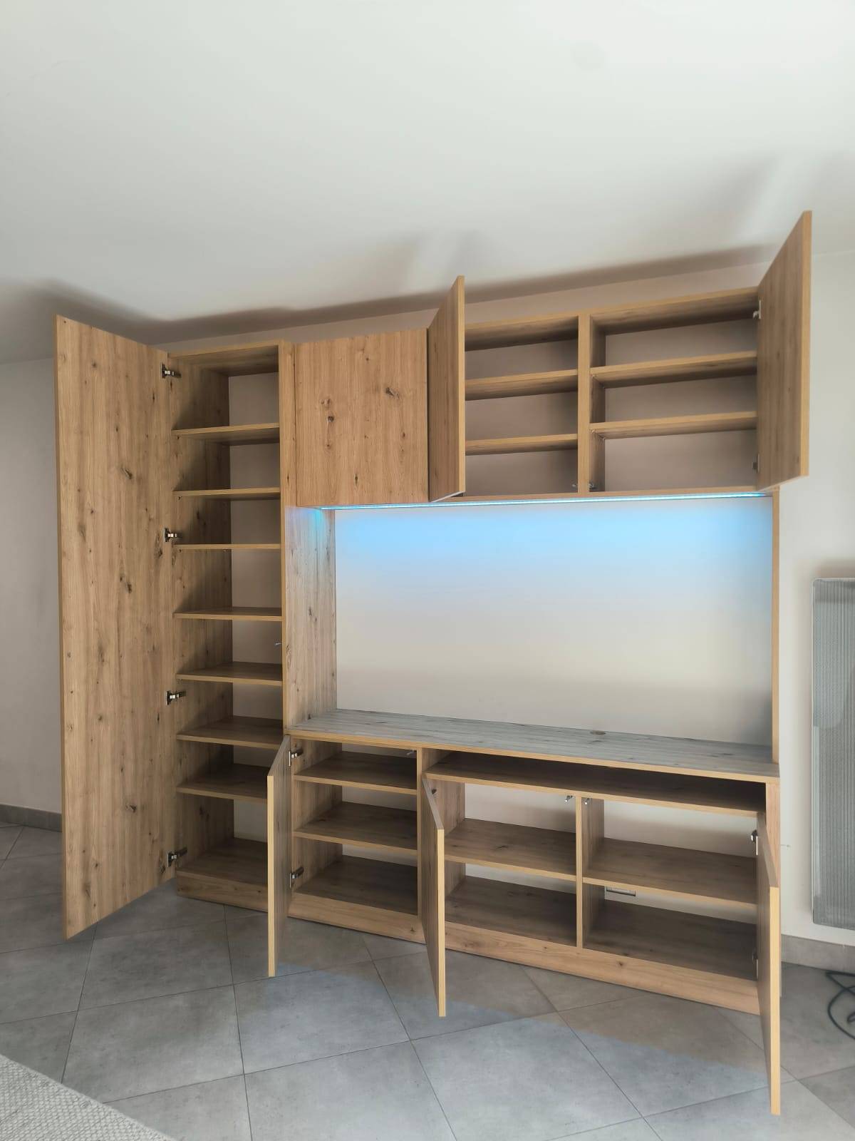 Situé à Villeneuve-Loubet, dans les Alpes Maritimes (06), ce projet met en avant la conception et l’installation d’un meuble TV avec rangements, entièrement réalisé sur mesure pour s’adapter parfaitement à votre intérieur.